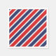 Partytorkduken visas i den vita cocktailstorleken med ett rött, vitt och blått randigt tryck.