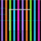 Ett avrivet mönster av svart och olika färger, inklusive aqua, grönt, orangen, lilor och rosor.