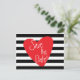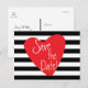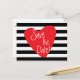 Randigt svart vitt rött hjärta vykort. Anpassa med valfri text för valfri händelse.