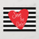 Randig svart vit röd hjärta vykort