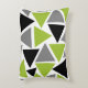 En geometrisk utformning av abstrakten med kalkgrön, medelstor grått och svarta trianglar som slumpmässigt placerats på vit bakgrund.