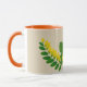 I denna mugg fångas tidigt Fall (hösten) i nordöstra Amerika, när lövet är i skuggor av grönt och gult. Utformningen bär löven från Horse Chestnut och Black Locust träd. Eftersom löv byter färger från grönt till gult heter det "Rang De Basanti", en populär fras på hindi-språk som elaken "färg it gult". Så passande! Så ge ditt liv med tidigt Falls charm och nåd med den här kombinationen mugg.