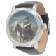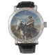 Foto av ensam cowboyen som rider sin häst på området finns på den här klockan. Vintage stil med ett stort skådespel och läderband av äkta gör det här till en underbar gåva till Fars dag, födelsedag, studenten eller till cowboyen i ditt liv!