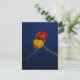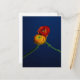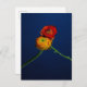 Fotografiskt vykort på 2 ranunkula blommor som förs in mot en djup blå bakgrund