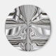 Ominous öga på en hemlig Pharaoh i svartvitt över en rippad bakgrund av rostfritt stål.