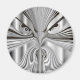 Ominous ögon på en förslutningsmask i svartvitt över en rippad bakgrund av rostfritt stål.