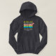 This hoodie is much better than I expected. top quality, true sizing, and really comfy. I was a bit worried that the lettering would be too dark on the navy blue hoodie, but once it arrived it was perfect. Easy to see the words, and the quality of the wording is fabulous. I will be buying more hoodies in future