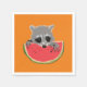 Raccoon Eating Watermelon. Anpassningsbarnas bakgrund färg. Cute raccoon digital art teckning för djur älskare.