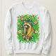 Sötskjorta i en söt tvättbjörn sitter i mitten i en trädgård, inramad av grönt löv, gult daisy och rosa tulpaner. Det djärva färger och lekfull information om ge är utformningen av en roligt, livlig vibe, som blandar träsket med en spricka i färg.