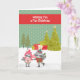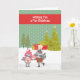 Rasionjulkort för barn. Konstruktionen är en pojke och en flicka som kissar på Raccoon, med snö på marken, träd, presenter och en grönt-polka-punktbakgrund som nästan liknar snö fall. Tack vare Hungryjpeg och Kreativ Fabrica för en del av inslag i designen.