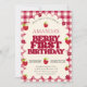 Raspberry Berry First 1st Birthday Party Inbjudningar