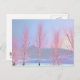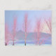 Digitalmålning av fågeltäckt träd i snö; rosan i snö tonades av sol. Här i norr är det vanligt att se snö täckt träd som slocknar antingen rosa eller orange vid sol hängande vid horisonten.