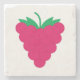 Do you like fun coasters? This coaster has a graphic of a pink raspberry with a green stem.