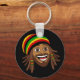 Double-sided keyring featuring a smiling Rastafarian man on the front. On reverse there are two customisable text areas, where you can add your own slogan and name