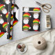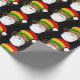 Fun Jamaica themed Christmas gift wrap patterned with a cute Rastafarian Santa Claus character