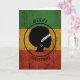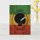 Den här designen har silhuetten från en afrikansk kvinna i en guld-cirkel med "Peace & Kärlek" tryckt på hennes huvudband på en nödlidande Rasta-flagga med "God jul" i svart typsnitt.