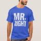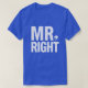 Denna brudgums tee stolt proklamerar “Rätt herr” med stora vita bokstäver. En liten ikon av en cylinder är placerad bredvid texten, vilket ger en formell men rolig touch. Den kungblåa skjortan får budskapet att sticka ut. Det är en självsäker, fräck present till brudgummen att ha på sig på repetitionsmiddagar eller medan han gör sig redo på bröllopsdagen.