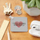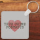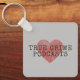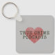 En nyckelring för rätt kriminal-podddragare överallt, med ett rött fingeravtryck hjärta med skrivmaskin stil text.