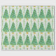 Vintage julkort med ett modernt julgran i mitten av seklet, turkos tall dekorerad med vita och gyllene gnistrande stjärnor. Granen står i en elegant guldpott.