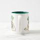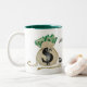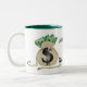 2 som pengar hänger lös på denna mugg med den läs- svart ord "visar precis, mig pengarna" som in skrivs ut - mellan hänger lös. Mörk - grön insida muggen
