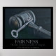 Trädomarens gavel och brasskelett nyckel. "Fairness" i ord tillsammans med en definition av ord.