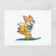 Räv som skidåkare med skidstavar vykort
