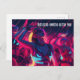 Vibrant vektorkonst av en vacker ung kvinna i ett klädesplagg vid en EDM-rave i påsklov i Miami i centrala staden. Skapad med generativa algoritmer och Photoshop.