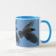 En flygande svart Raven glider över ansikte i denna vackra djurälskares mugg. Du kan lägga till din egen text och\eller ändra bakgrunden färg till kostym efter dina behov.
