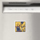 Raven Mad (en av sex formgivningar) från "Pop Goth Nightmare" Series 2022 av den amerikanska konstnären Dean A. Kendrick. 2-tums fyrkantig kylmagnet. I skuggorna av Mardi Gras, krymper korpmannen, en självproklamerad harlequin, fåglar som passerar. En gothisk/popkonhybrid som dras för hand med markör på papper, digital processaa och färg.
