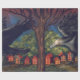 Halloween är papper med magisk nattillustration. Lakeside-hus och jättevaken med månljus i ögon. Se på en borom i stjärnan himmel. Digital teckning.