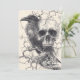 En bisarr harmoni skapat av en skalle, en korv och sammanflätat grenar. Om vanliga inbjudningar från Halloween fest känns tråkiga är detta kort perfektens alternativ. Vintagens känsla och nedslående ambitioner kommer att öka förväntningarna när gästerna får det. Lägg till en speciell beröring till party med det här enastående kortet. (AI-genererad teckning)