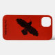 En enkel, svart silhuett av en Raven (Corvus corax) på en röd, läderseende bakgrundsbild. Korvbilden har en lätt "grov" eller "försliten" effekt. Lägg till din egen text.