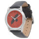 En enkel, svart silhuett av en Raven (Corvus corax) på en röd, läderseende bakgrundsbild. Korvbilden har en lätt "grov" eller "försliten" effekt.