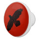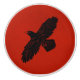 En enkel, svart silhuett av en Raven (Corvus corax) på en röd, läderseende bakgrundsbild. Korvbilden har en lätt "grov" eller "försliten" effekt.