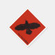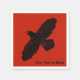 En enkel, svart silhuett av en Raven (Corvus corax) på röd bakgrund. Korvbilden har en lätt "grov" eller "försliten" effekt. Lägg till din egen text.
