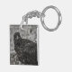 Ett svart och vitt foto av en svart fågel med ett allvarligt ansiktsuttryck, som förmodligen undrar vad som händer runt den. Upphovsrätt ©2019 Kimberly J Tilley.