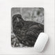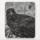 Ett svart och vitt foto av en svart fågel med ett allvarligt ansiktsuttryck, som förmodligen undrar vad som händer runt den. Upphovsrätt ©2019 Kimberly J Tilley.