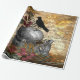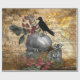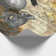 Raven kråka på en skalle. Spider kryper på huvudet. Vintagens ephemera-design med föråldrad grym bakgrund.