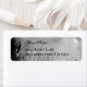 En redigerbar returadressetikett med svartantikalt skript brev för ditt namn och blockera brev för anpassningsbarna adress mot ett skämt Halloween himlar med gotiska ravens och moln med svartvit ljus.