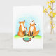 Rävfamiljen välkomnar en ny liten glädje i sin familj! De är tydligt glada (en av rävföräldrarna ylar av glädje!) och de små rävarna är nyfikna på sin nya syskon. Detta kort skulle vara ett utmärkt val för att gratulera någon till det senaste tillskottet i deras familj. Korthälften visar meddelandet "Vi älskar dig!", vilket gör detta kort mycket mångsidigt för firande av adoptantdagen, baby shower och mer.