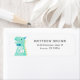 Kortets returadressetikett för ditt barns födelsedagsfest för dinosauritemat! Illustration av en grönt dinosauer som bär en party hatt på den lämnat med ett typsnitt på kroppen som säger "RAWR!" Anpassa den här produkten genom att lägga till adress på högerna. Underbar för en pojkes födelsedagsfest.
