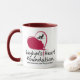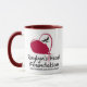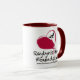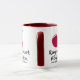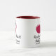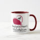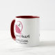 Röd/vitkaffemugg med Raylyns logotypen för hjärtafundament. Underbaren långt som stöttar en underbar, orsakar.