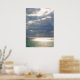 Ljusstrålar ner från himlen genom molnen under morgonsoluppgången. Oceanskt landskap i mjuka nyanser av blått, grönt och grått, och en ljuspunkt för solljus som lyser ned ovanpå havet. En inspirerande och spännande scen av ljus och skönhet hos naturen. Bild tagen i Miami Beach, Florida All Desigyright © 2013 www.CuteComfy.com