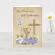 Med det här eleganten firar man helig-heligenätets heliga pseudofiler från första Heligan Communion och Bekräftelse med en vackert symbolisk utformning. En kor, en schalice, ett ljus och en duva är omtänksamt arrangerad med ömtåliga blommigtar vid basen, som representerar tro, Heliga Spirit och resan för att ta upp kristna. Om du ställer in konturerna mot en mjuk kontur med ett subtilt texturerat utseende, kontureras teckningen om värme och återgivning. Inuti finns ett hjärtligt budskap som ger välsignelser och grattisar, och skapar detta som en meningsfull keepé för dem som får dessa heligor.