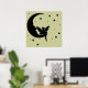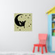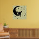 En silhuett av en älv sitta på måne, omgiven av stjärnor. Du kan gärna ändra bakgrunden till färg så att den stämmer bättre överens med väggen och skjut bättre.