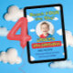 Reach FOUR the Sky, Picture Clouds 4th Birthday Invitation