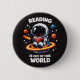 Reading is out of this world shows a cute astronaut sitting on a bright planet while reading a book in space. A playful space themed reading scene for book lovers, students and science fans who enjoy imagination and curiosity.