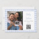 This fun baby shower invitation features a retro soda bottle with a pretty blue bow and can be personalized with your details set in stylish typography. The reverse features your special photo and registry QR code on a blue gingham background. Designed by Thisisnotme©