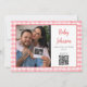 This fun baby shower invitation features a retro soda bottle with a pretty red bow and can be personalized with your details set in stylish typography. The reverse features your special photo and registry QR code on a red gingham background. Designed by Thisisnotme©