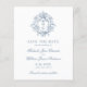 Meddela din speciella dag i stil med den här eleganten, budgetvänlig spara datumkortet med en vintage-inspirerad vapensköld som är försedd med tunn blommigt och ett anpassade monogram. Den mjuka blåa paletten färg och den tidlösa serif och script typsnitt skapar ett förfinat och sofistikerat utseende, perfekt för att ange tonen för ett formellt bröllop firande. På den omvända sidan visas ett valfritt utfallsfoto med ett enkelt redigerbart "Spara datumskript" och datumöverlägg, som lägger till en personlig och romantisk beröring. Den mindre, billigare storleka erbjuder en snyggt men ändå ett ekonomiskt sätt att ditt bröllop-datum med nära och kära. Denna utformning är idealisk för par som vill ha en klassisk och romantisk estetik för att göra ett minnesvärt första intryck på sina gäster. Dessa budgetkort är bara tillgängliga som tryckta kort. Standardkorten 5 x 7 är också tillgängliga som direkta digitala nedladdningar.